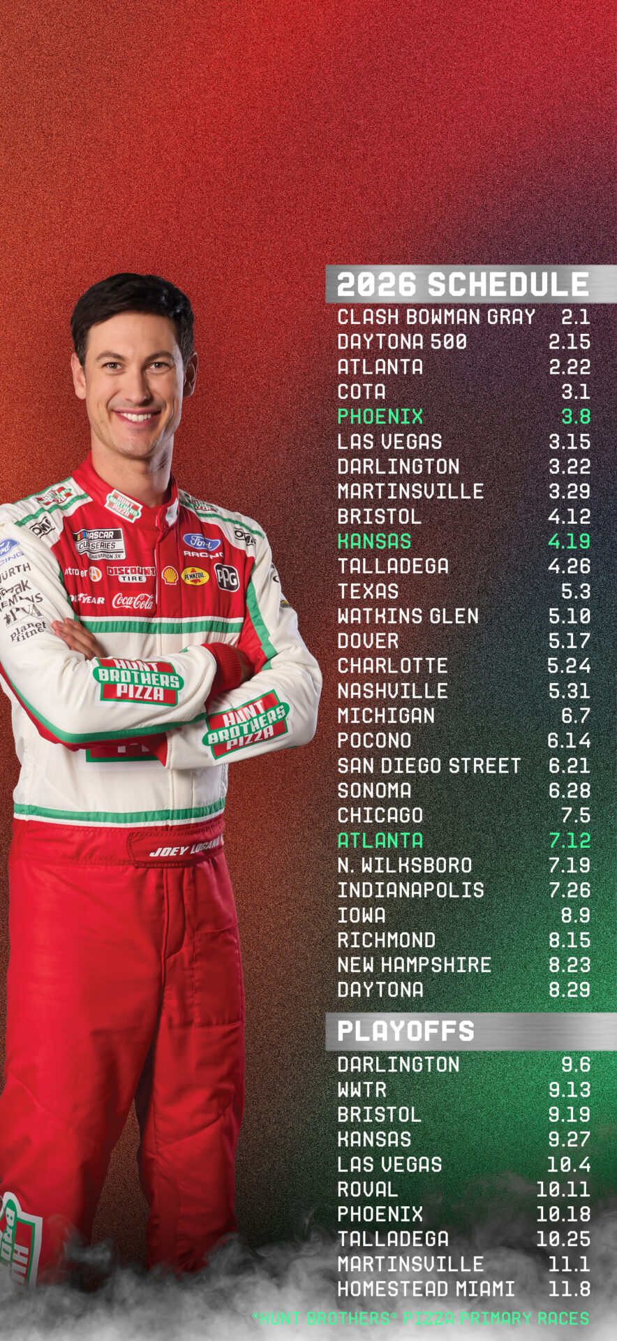 Download Hunt Brothers® Pizza x Joey Logano wallpapers and bring a little race-day excitement wherever you go!